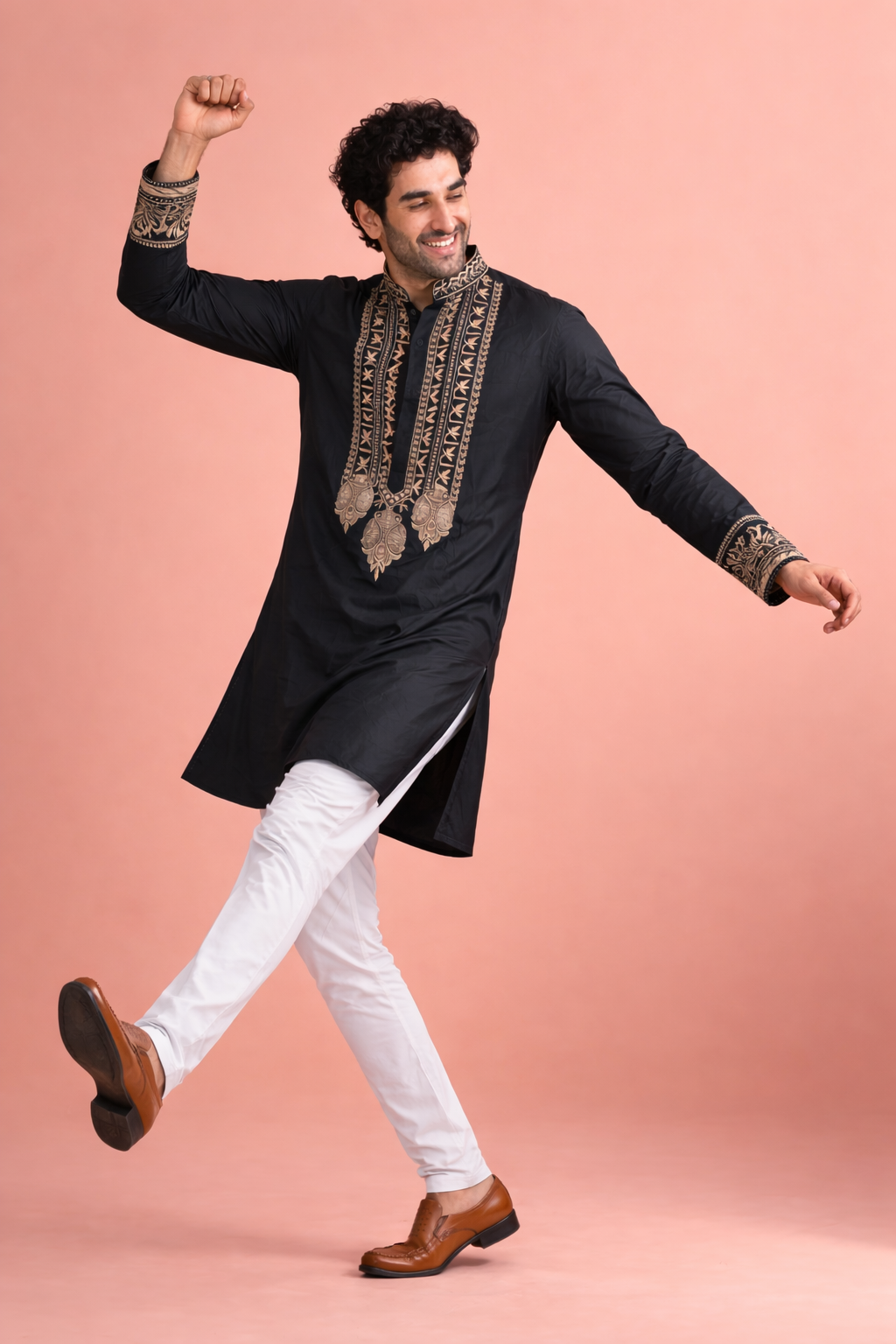 Classic Black Kurta with Traditional Threadwork