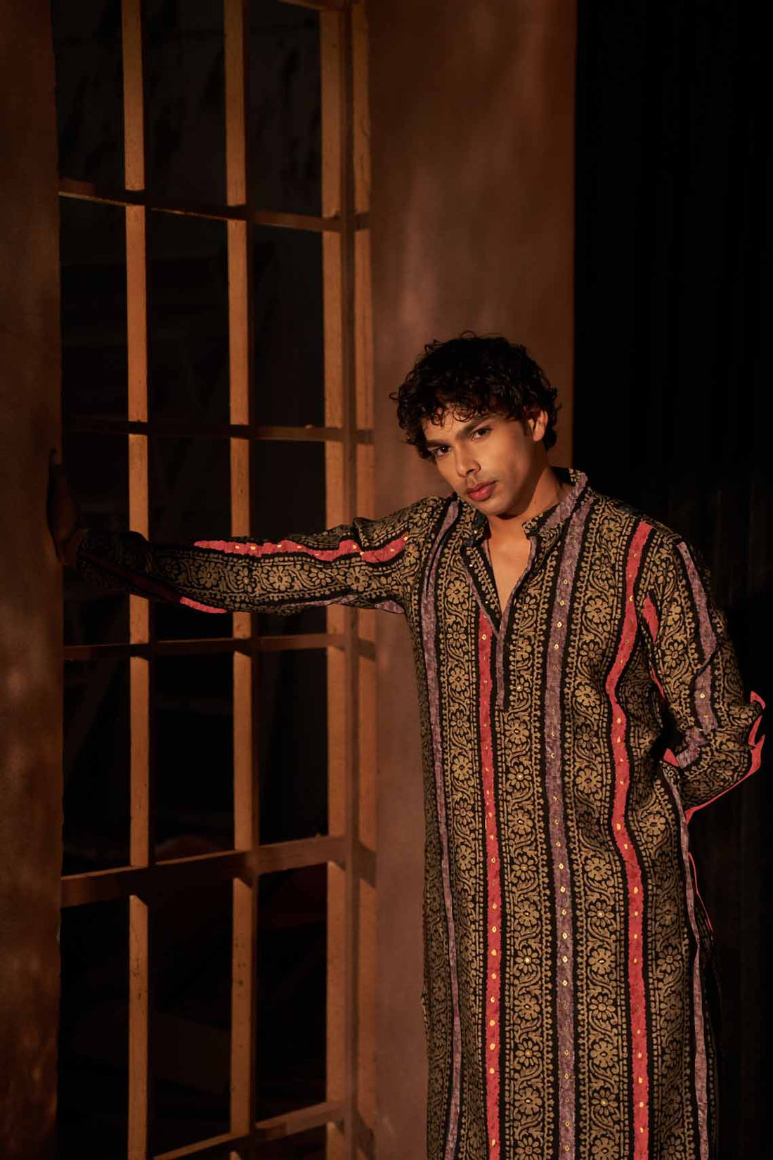 Dark Grey Embroidery and Stone Work Sequence Kurta