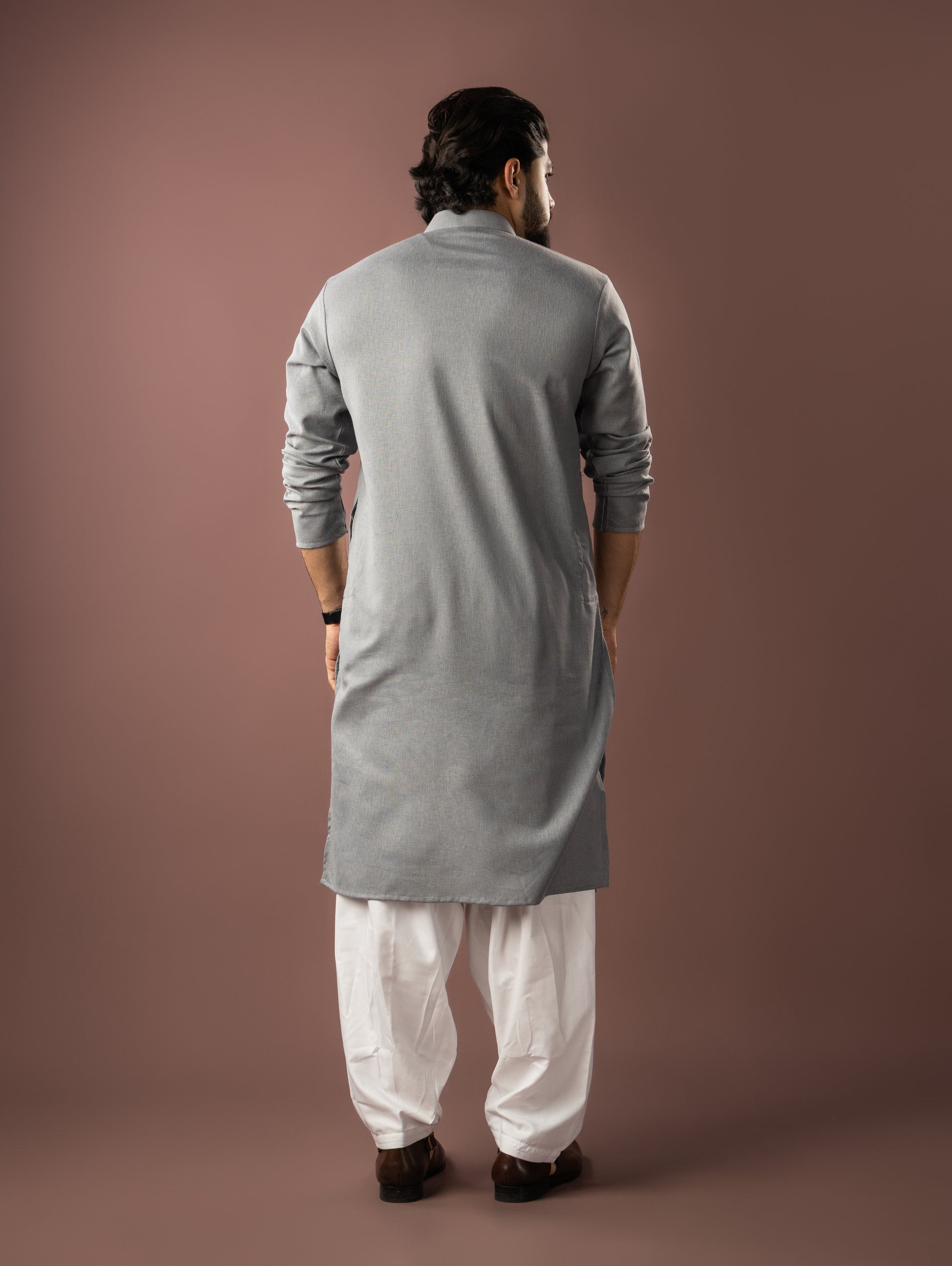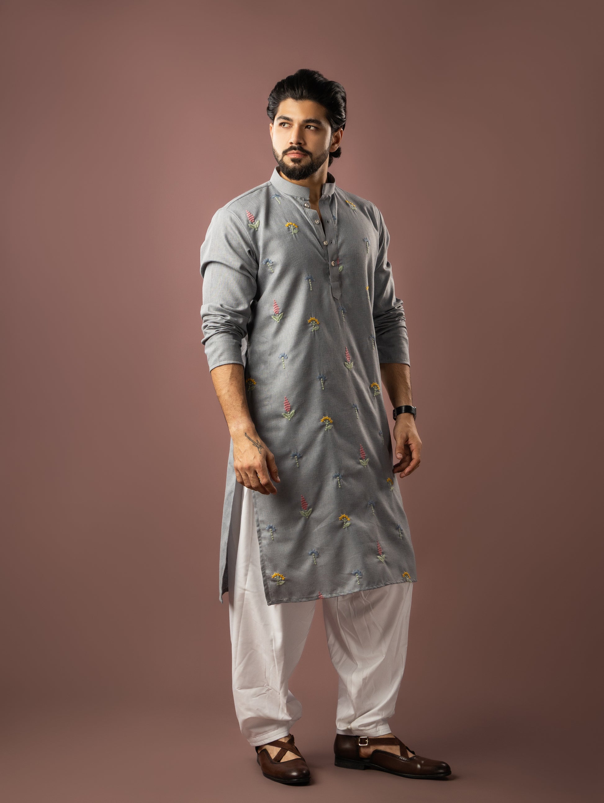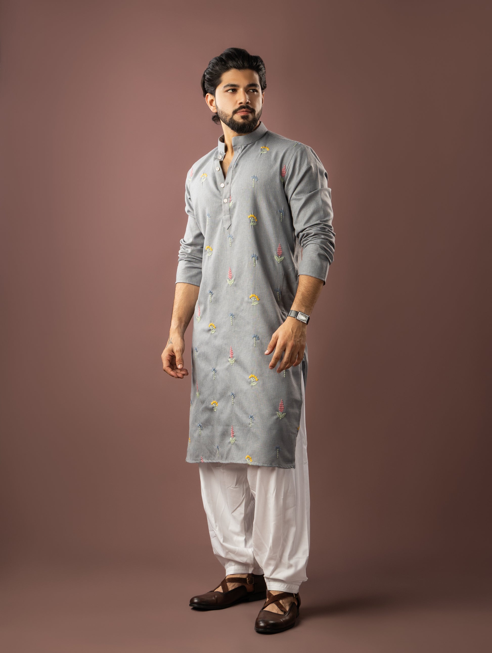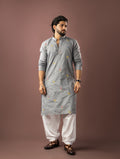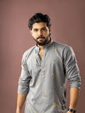 Bluish Grey Embroidery Linen Kurta