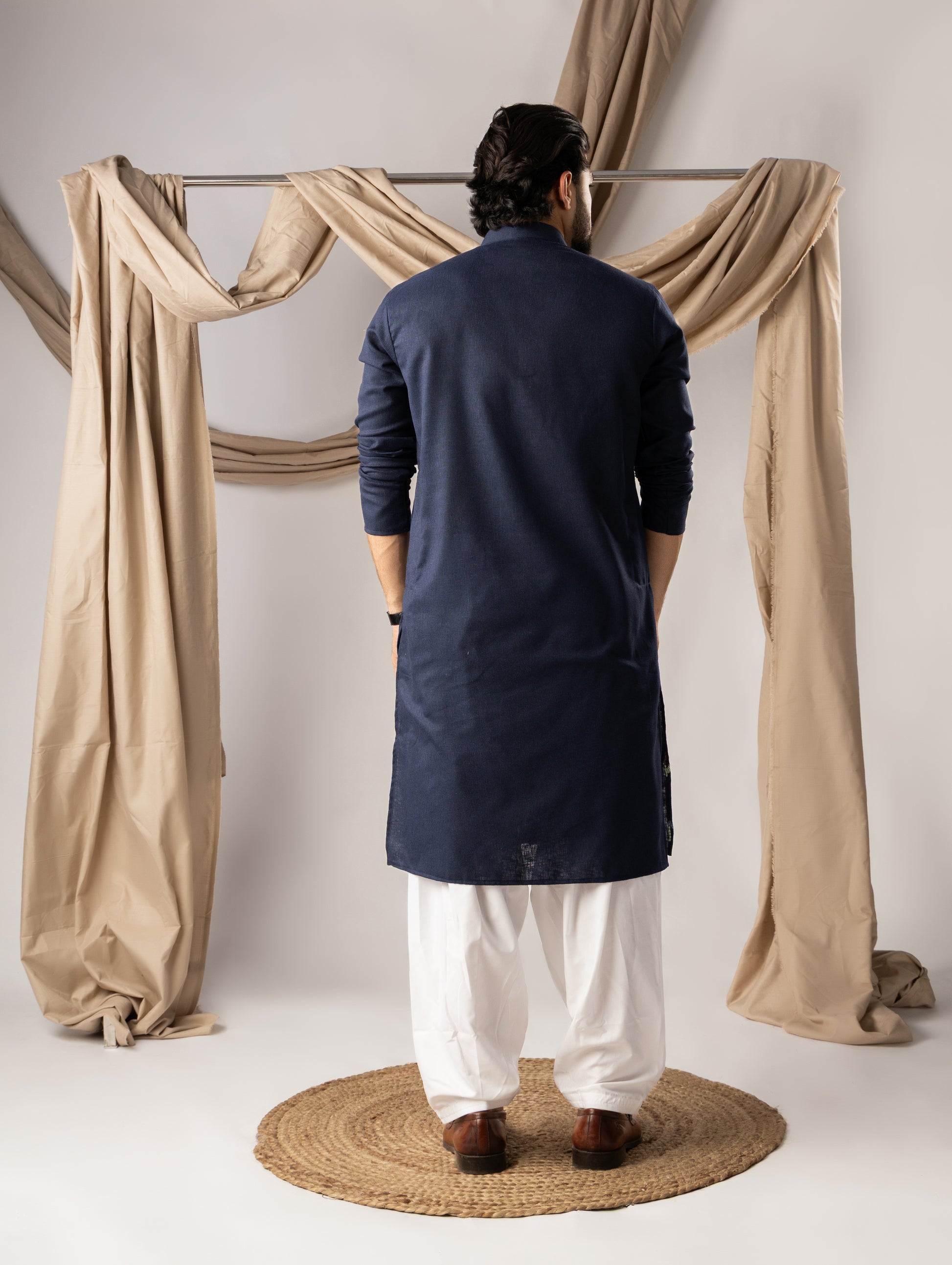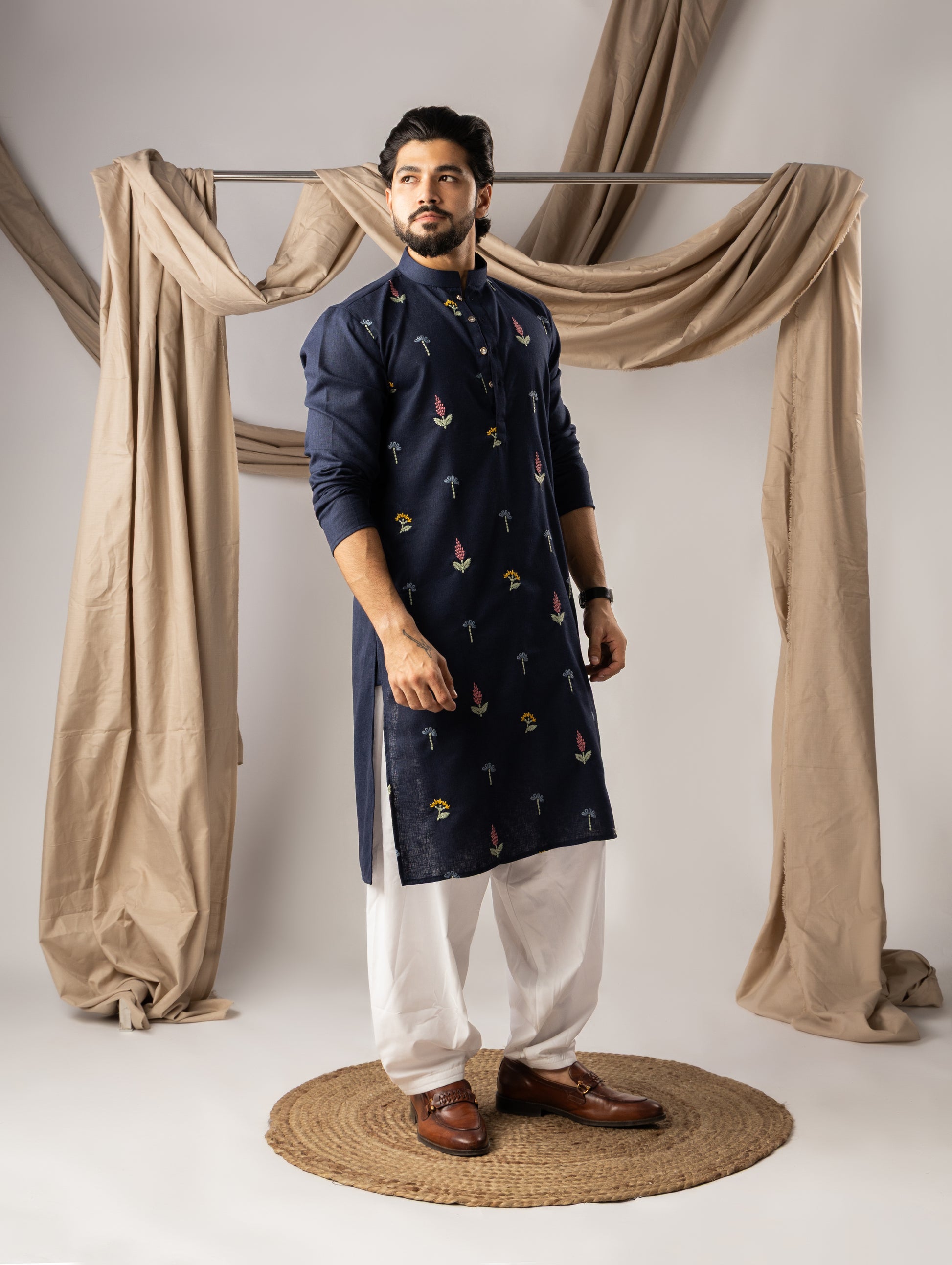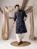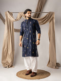 Deep Navy Embroidery Linen Kurta
