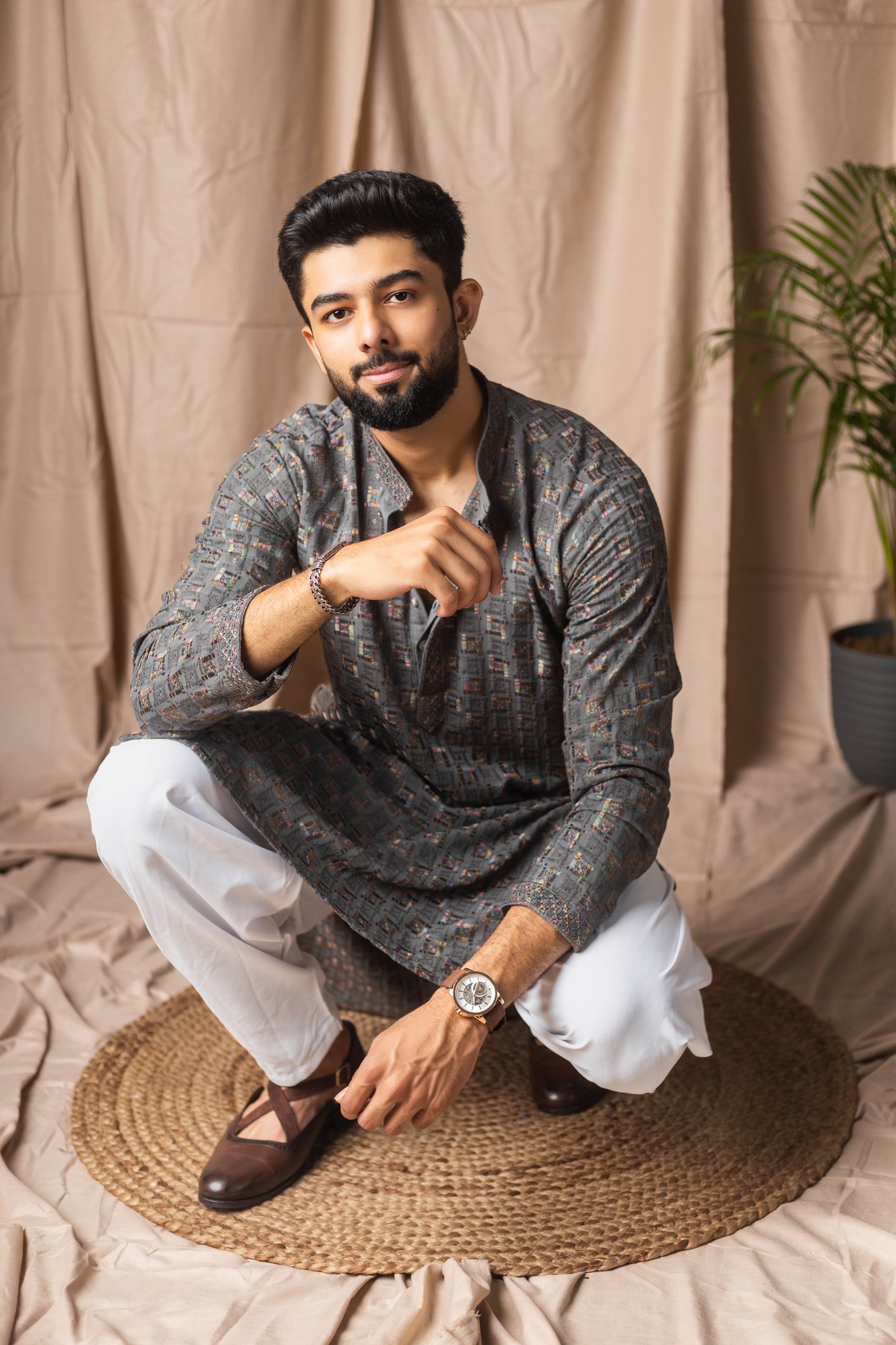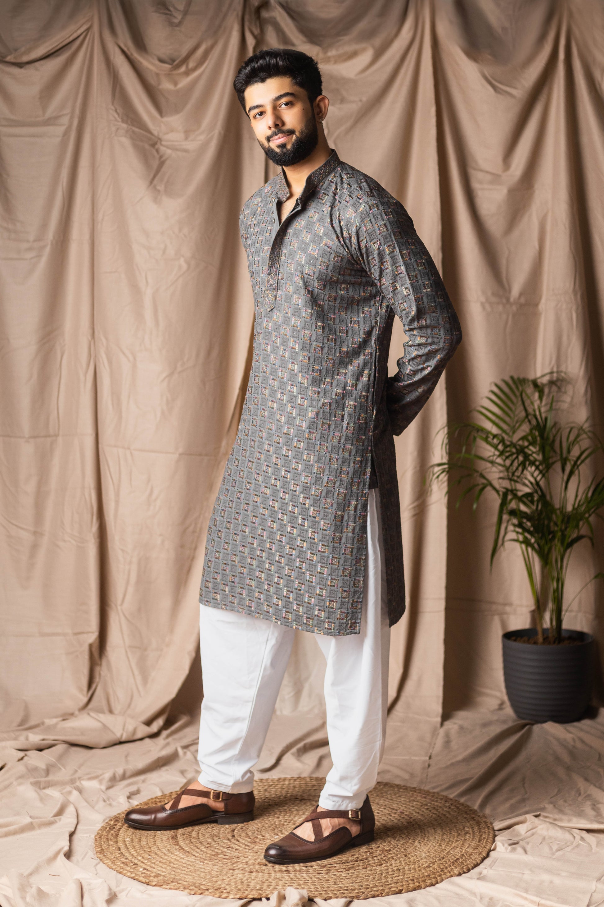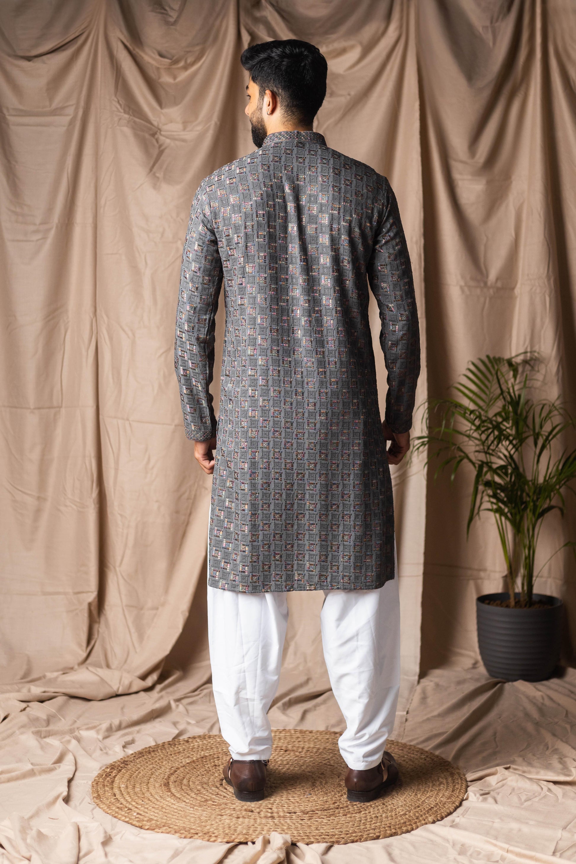 Grey Embroidery and Sequence Kurta