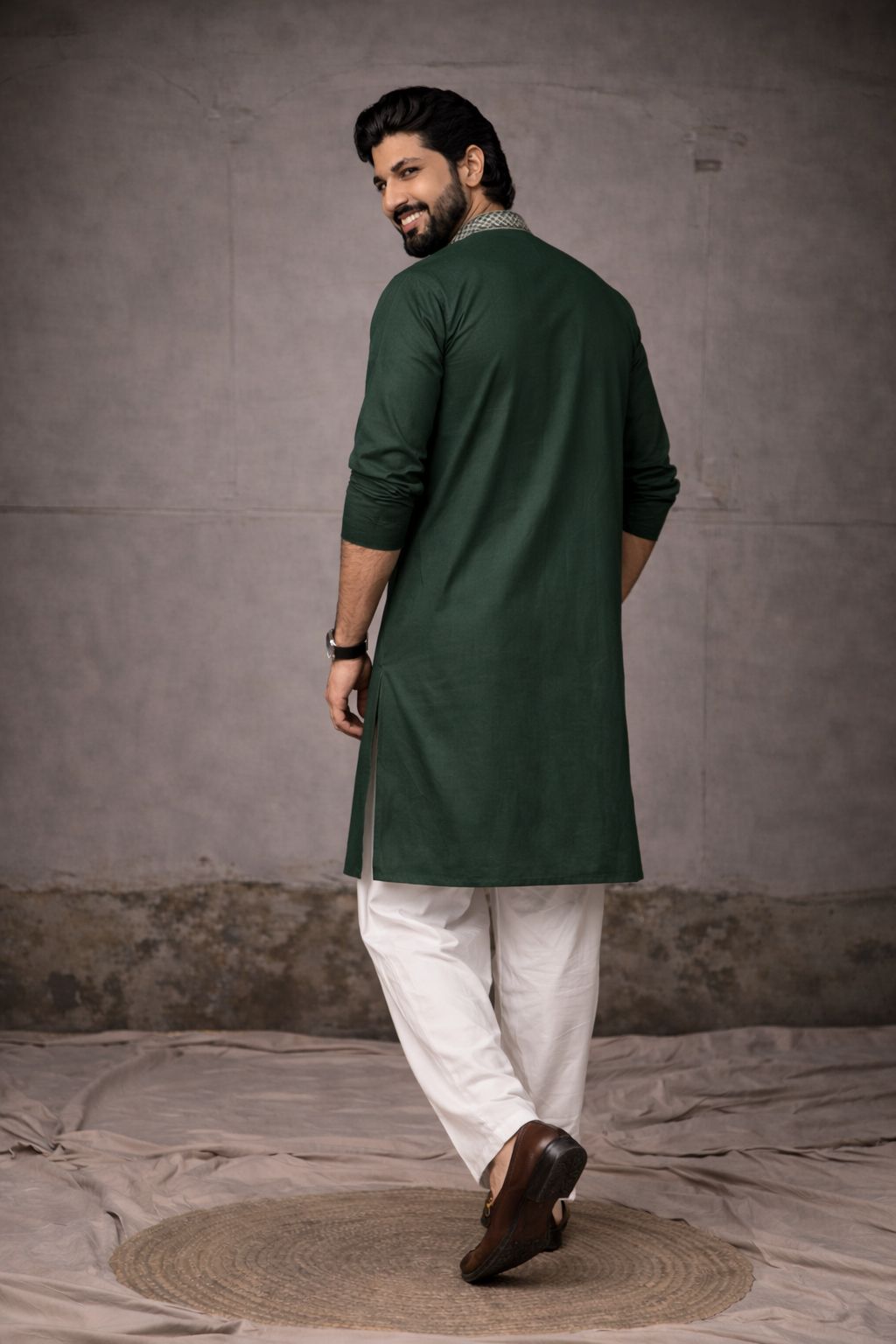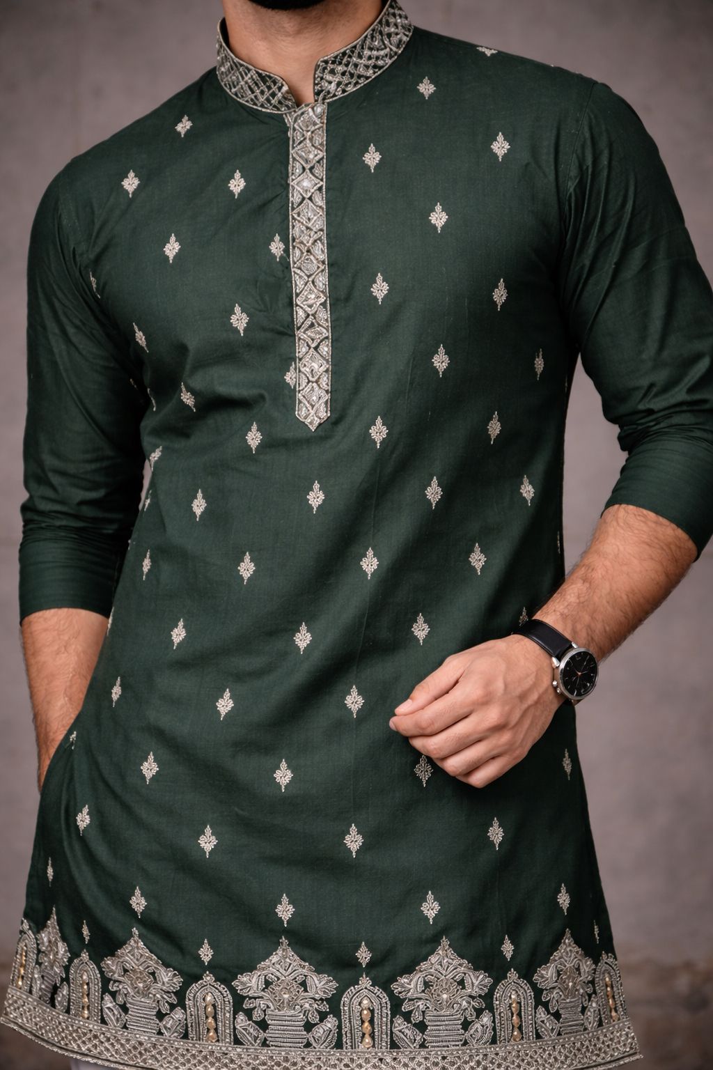 Heritage Green Kurta with Delicate All-Over Embroidery