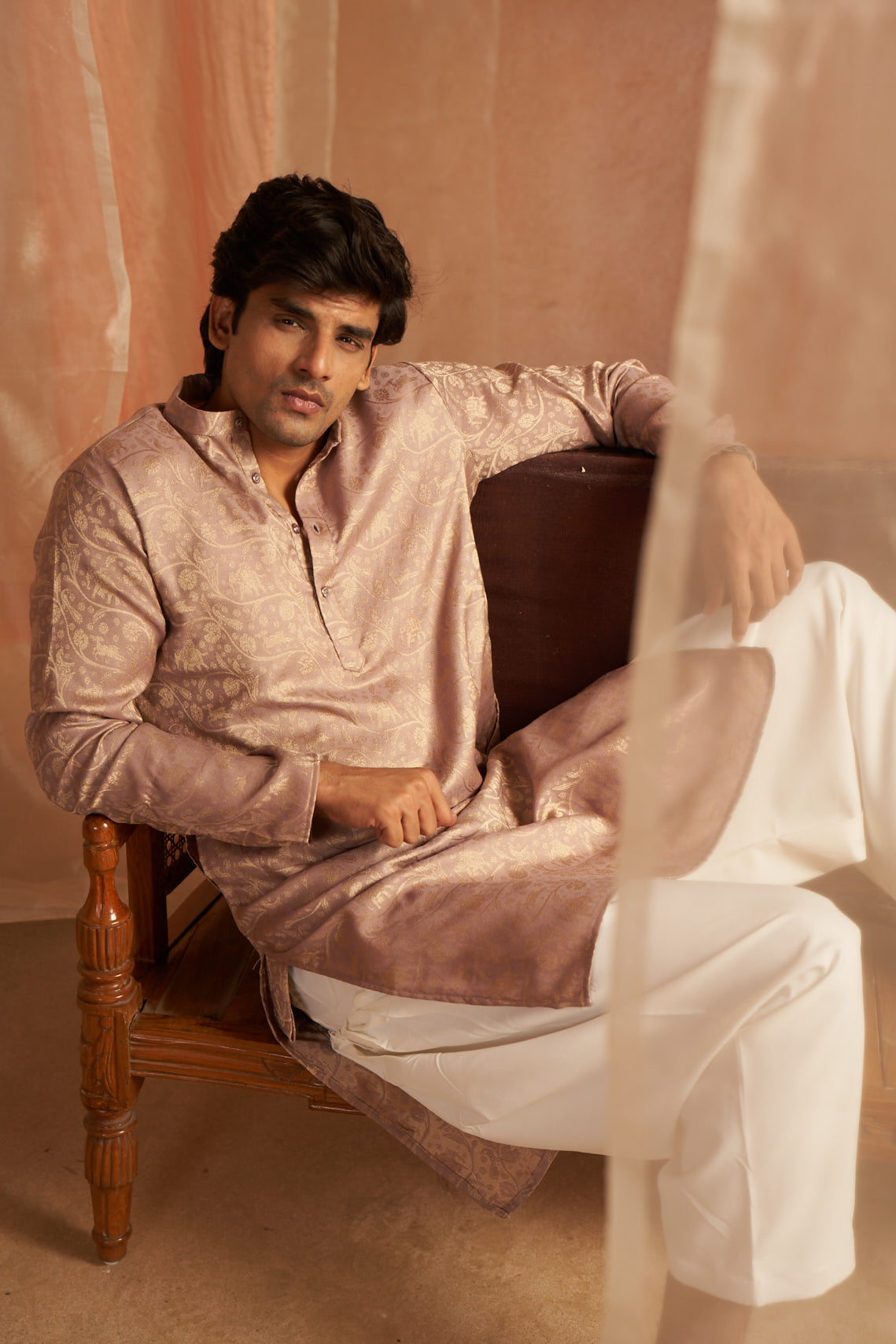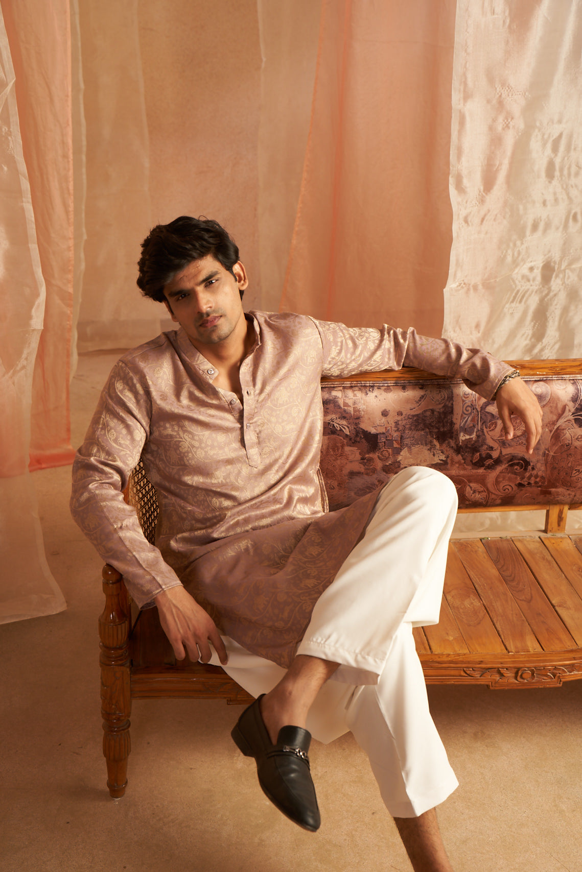 Mauve Abstract Print and Sequence Kurta