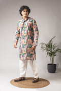 Multicolor Linen Printed Kurta