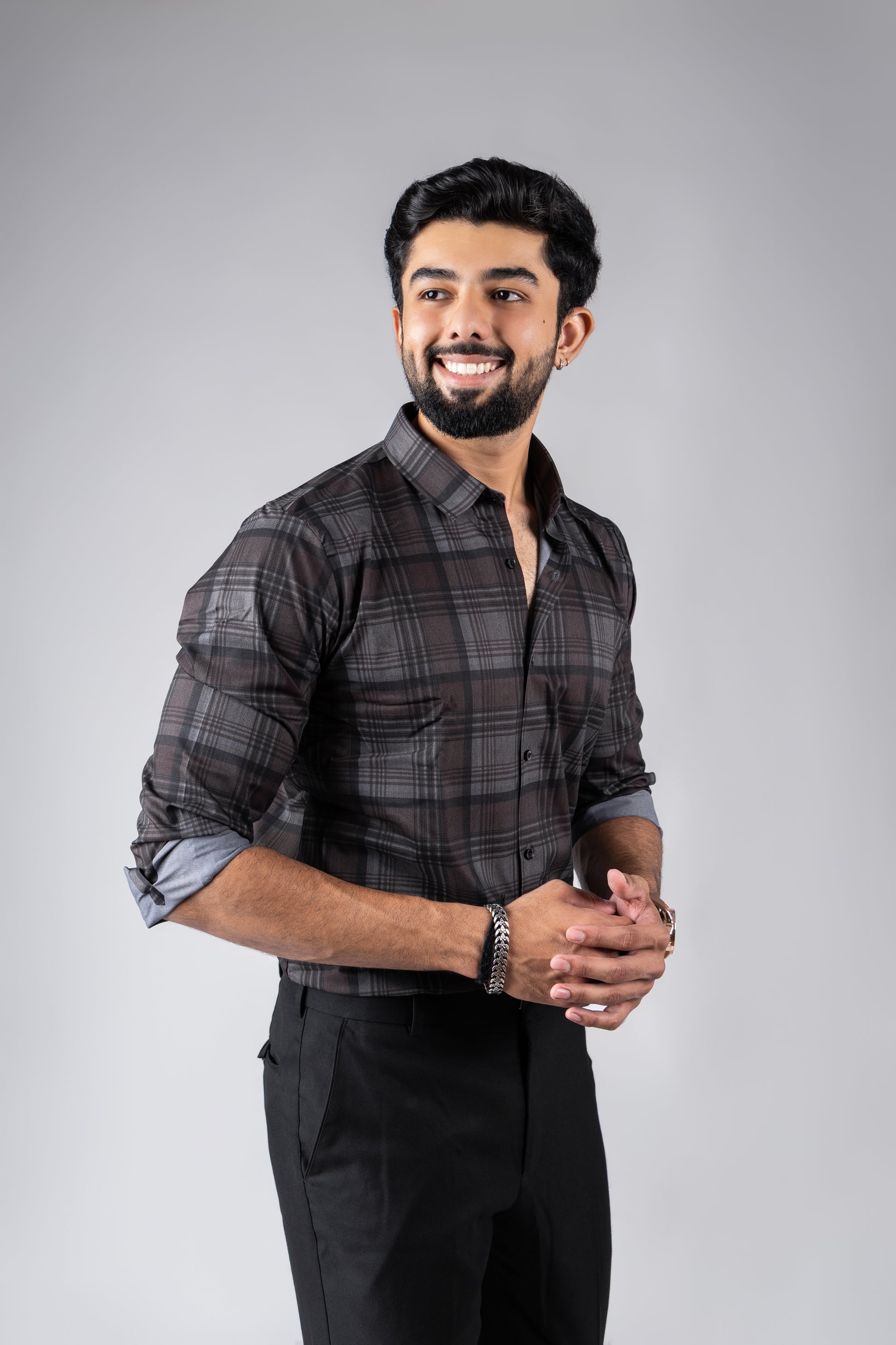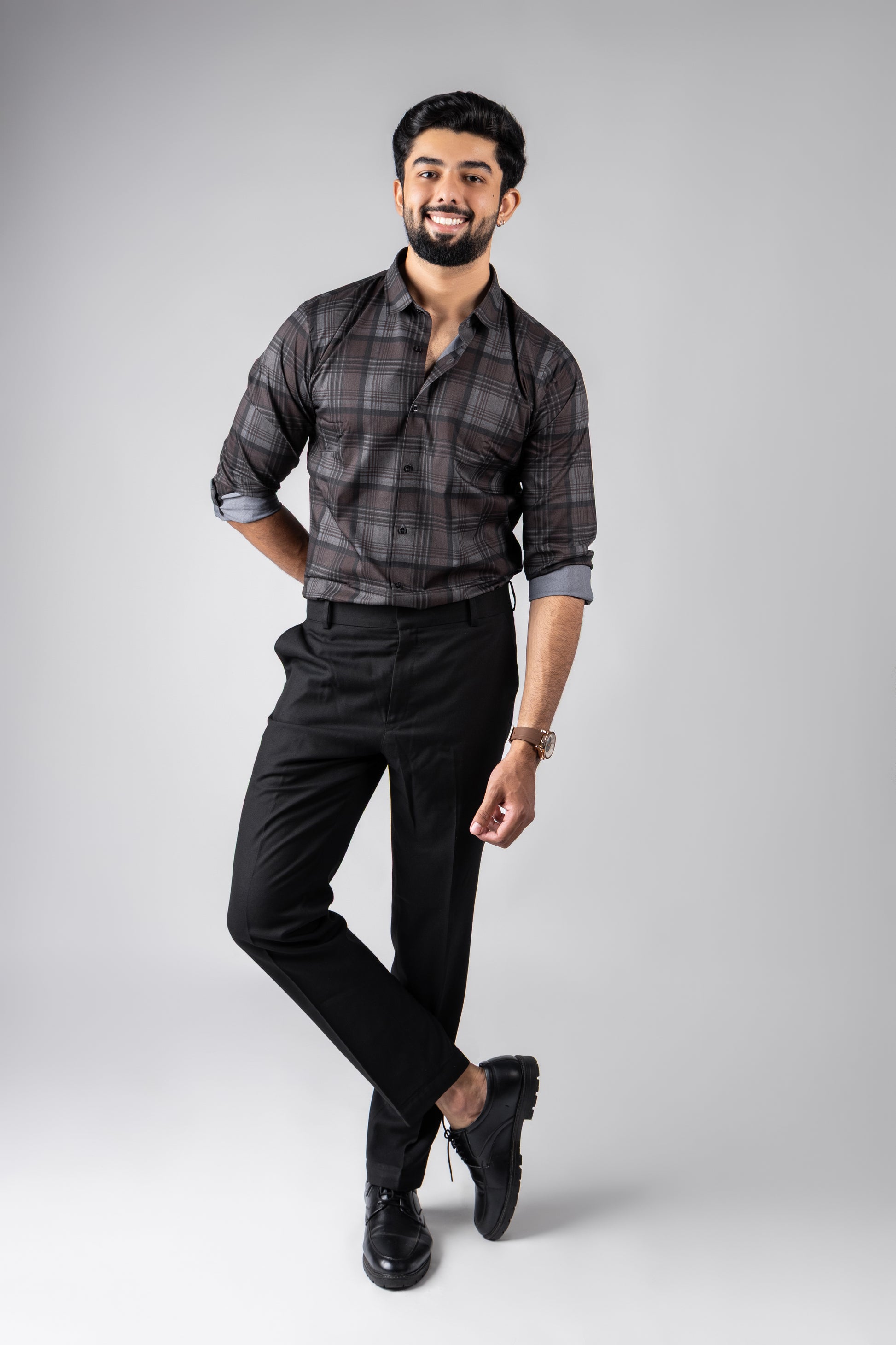 Brownish–Black Checks Stitch-less Shirt