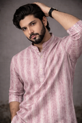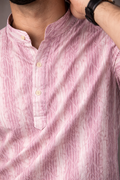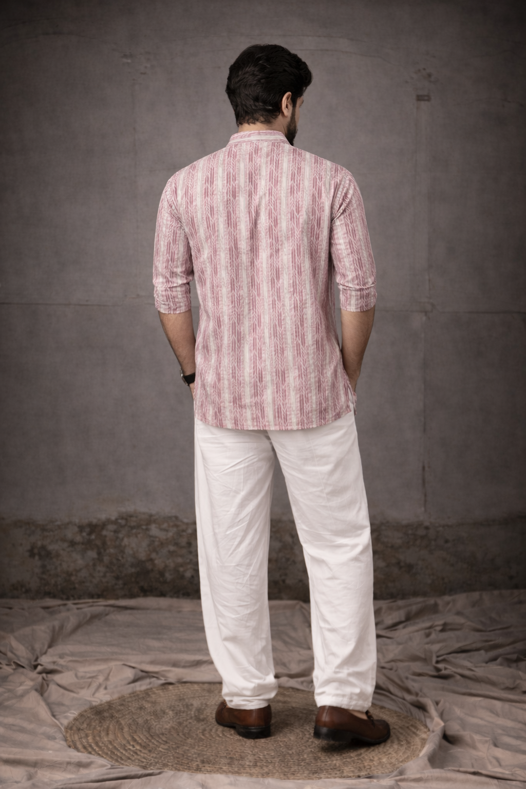 Pink Printed Cotton Mandarin Collar Casual Short Kurta