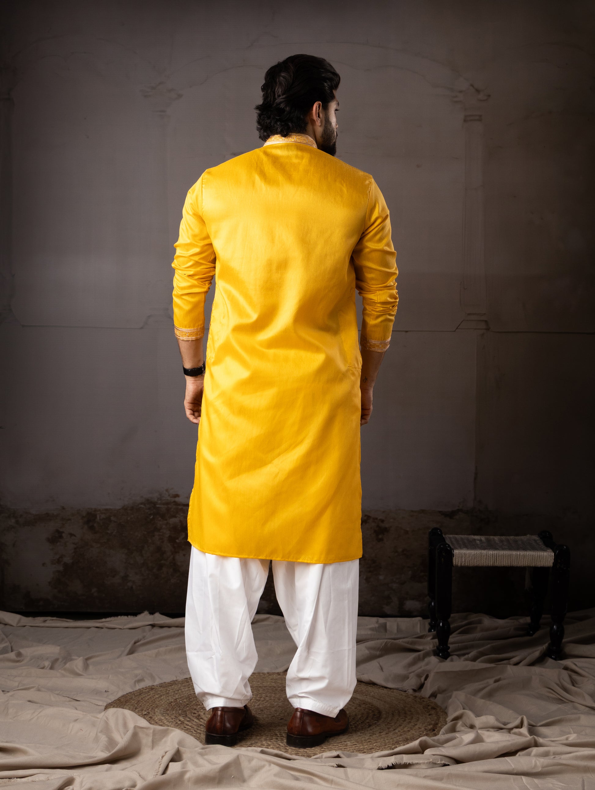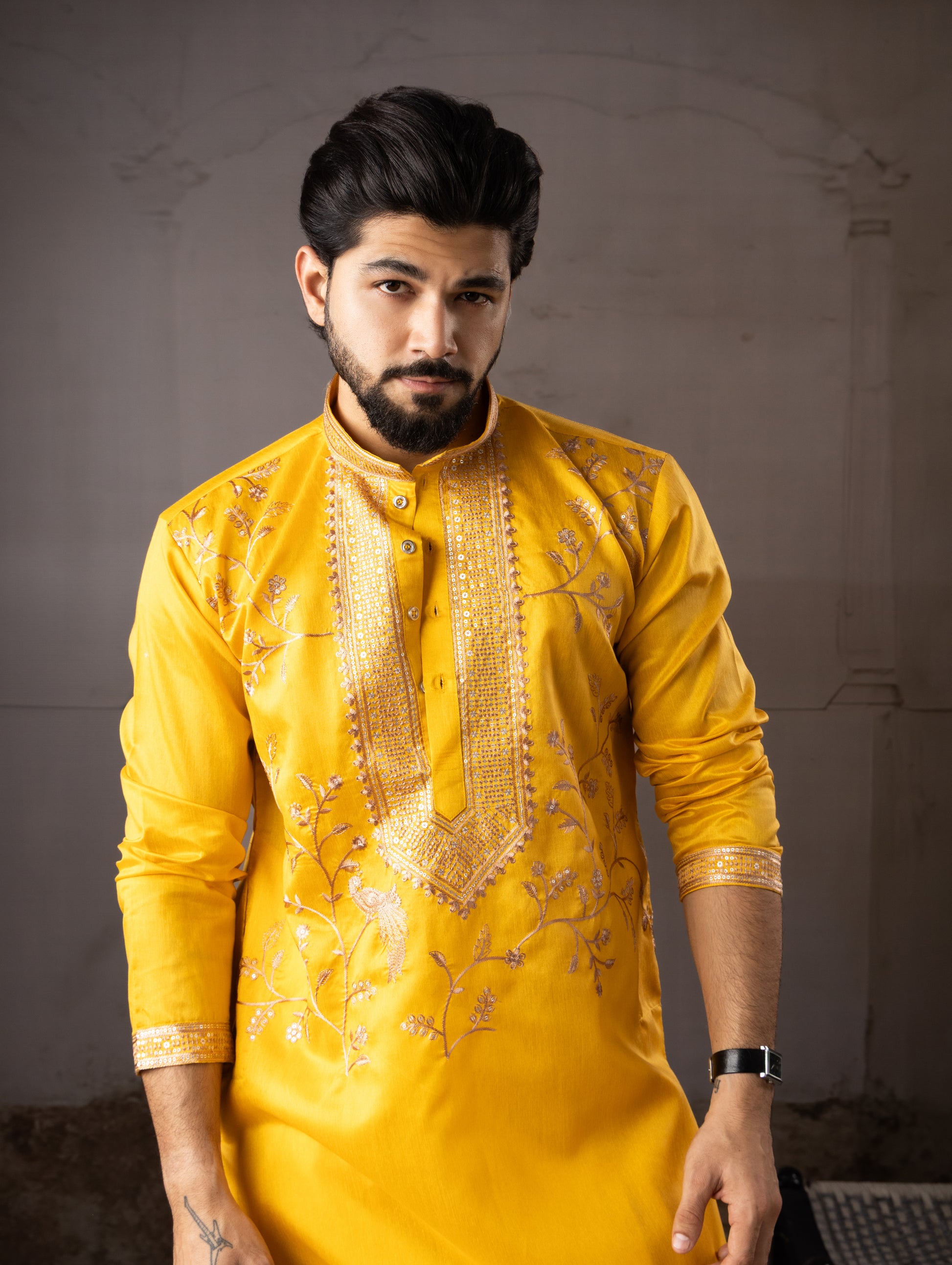 Premium Mustard Yellow Traditional Kurta with Floral Detailing