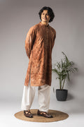 Reddish Brown Abstract Print Neck Work Kurta