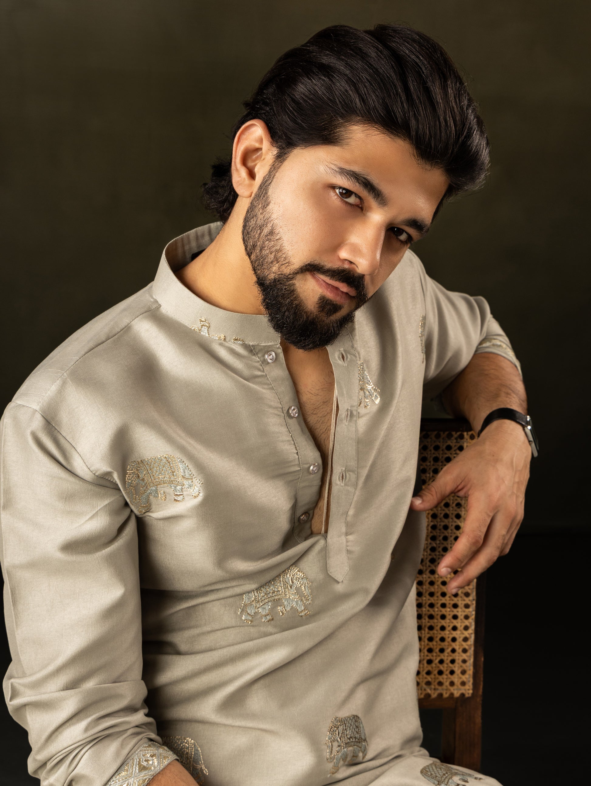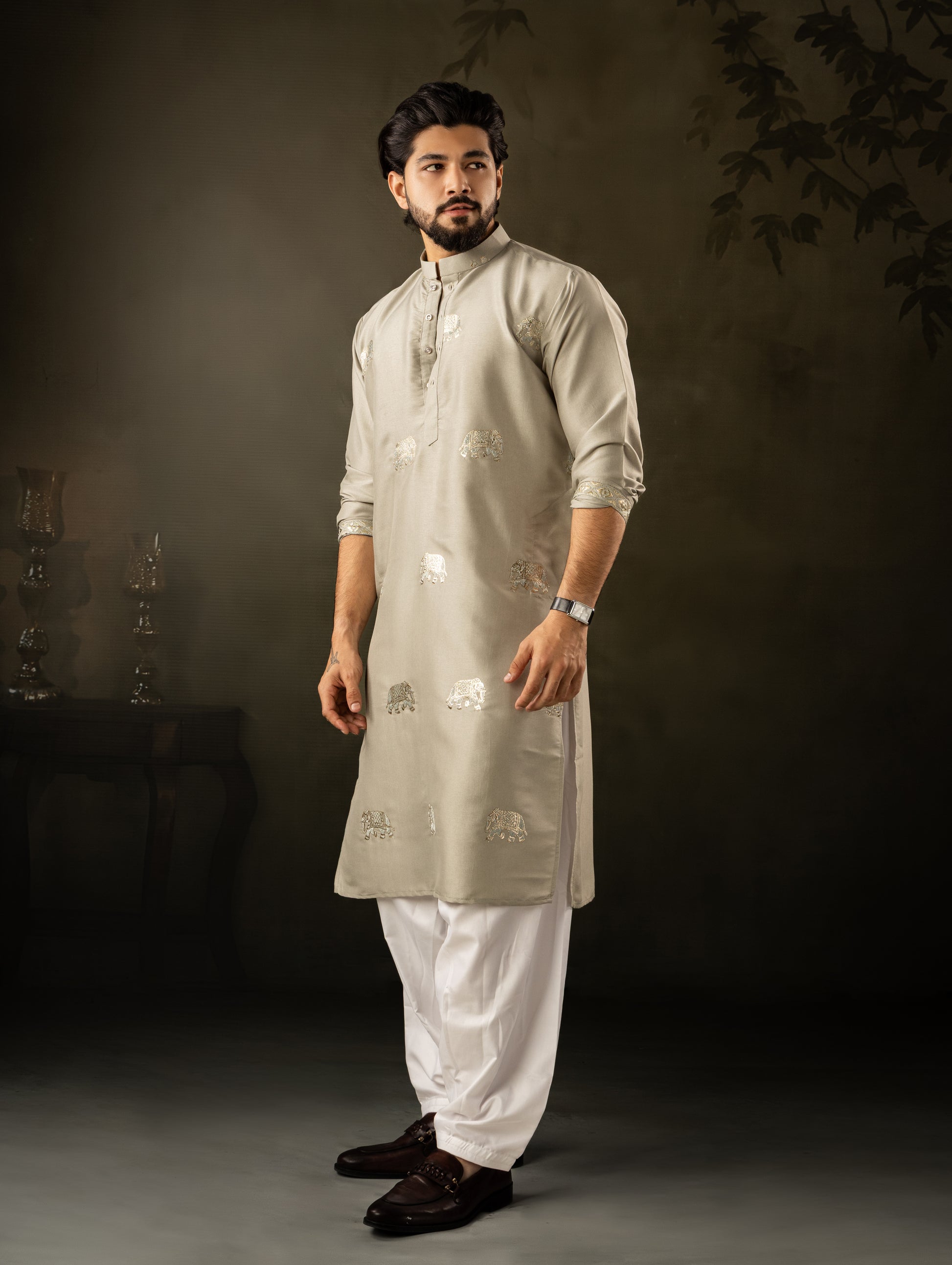 Sage Green Elephant Embroidered Motif Kurta