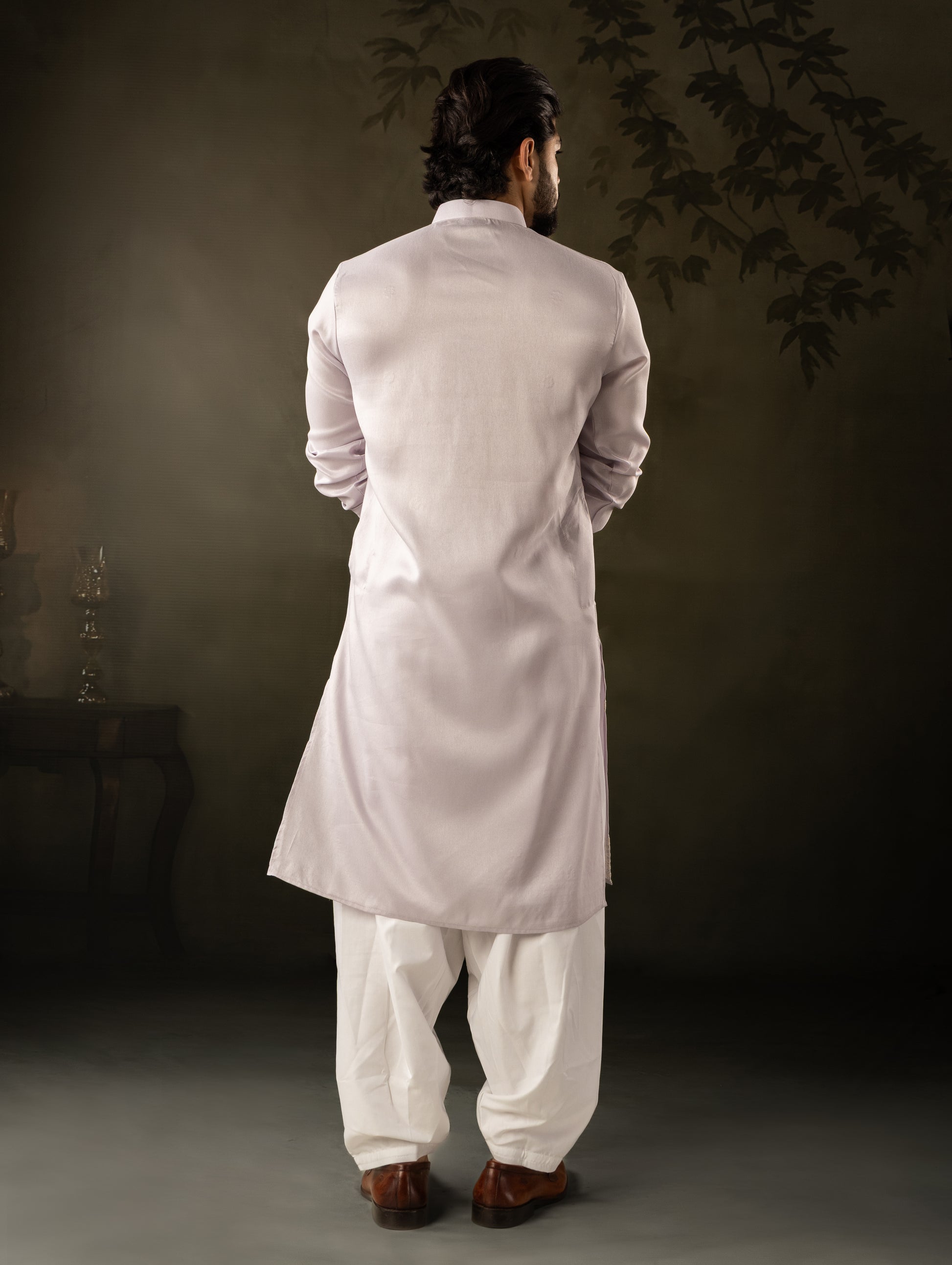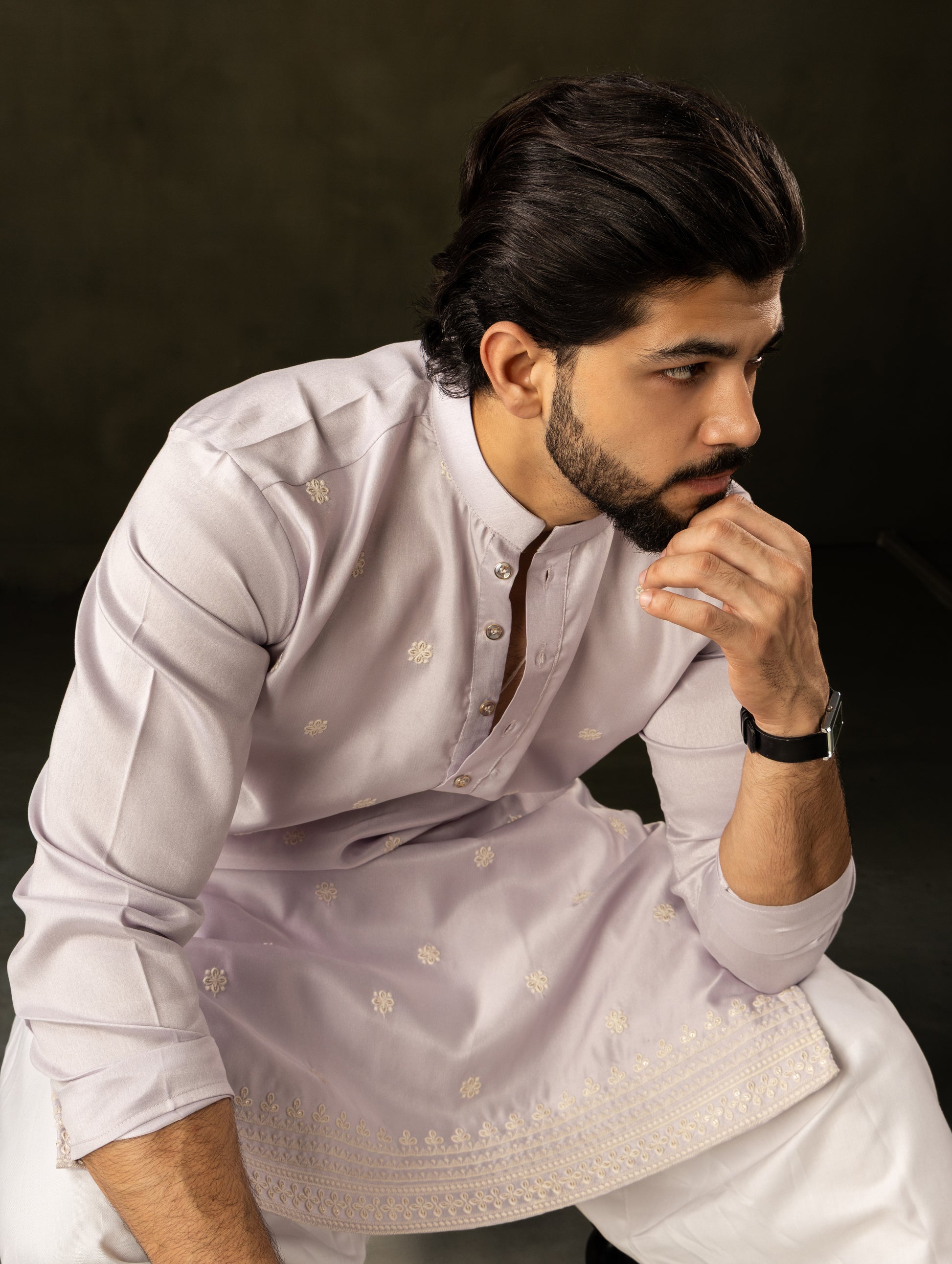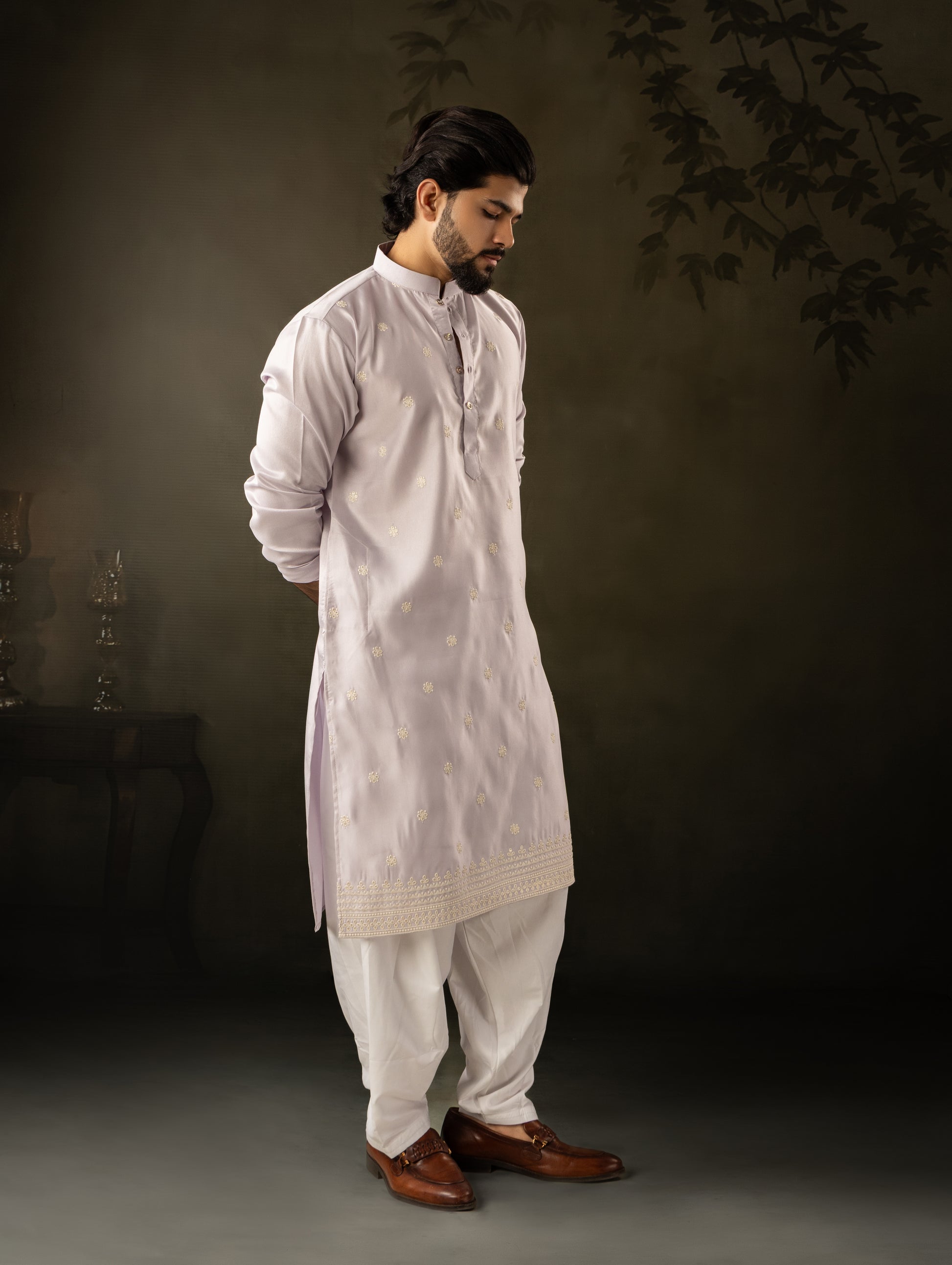 Soft Lilac Kurta with Delicate All-Over Embroidery