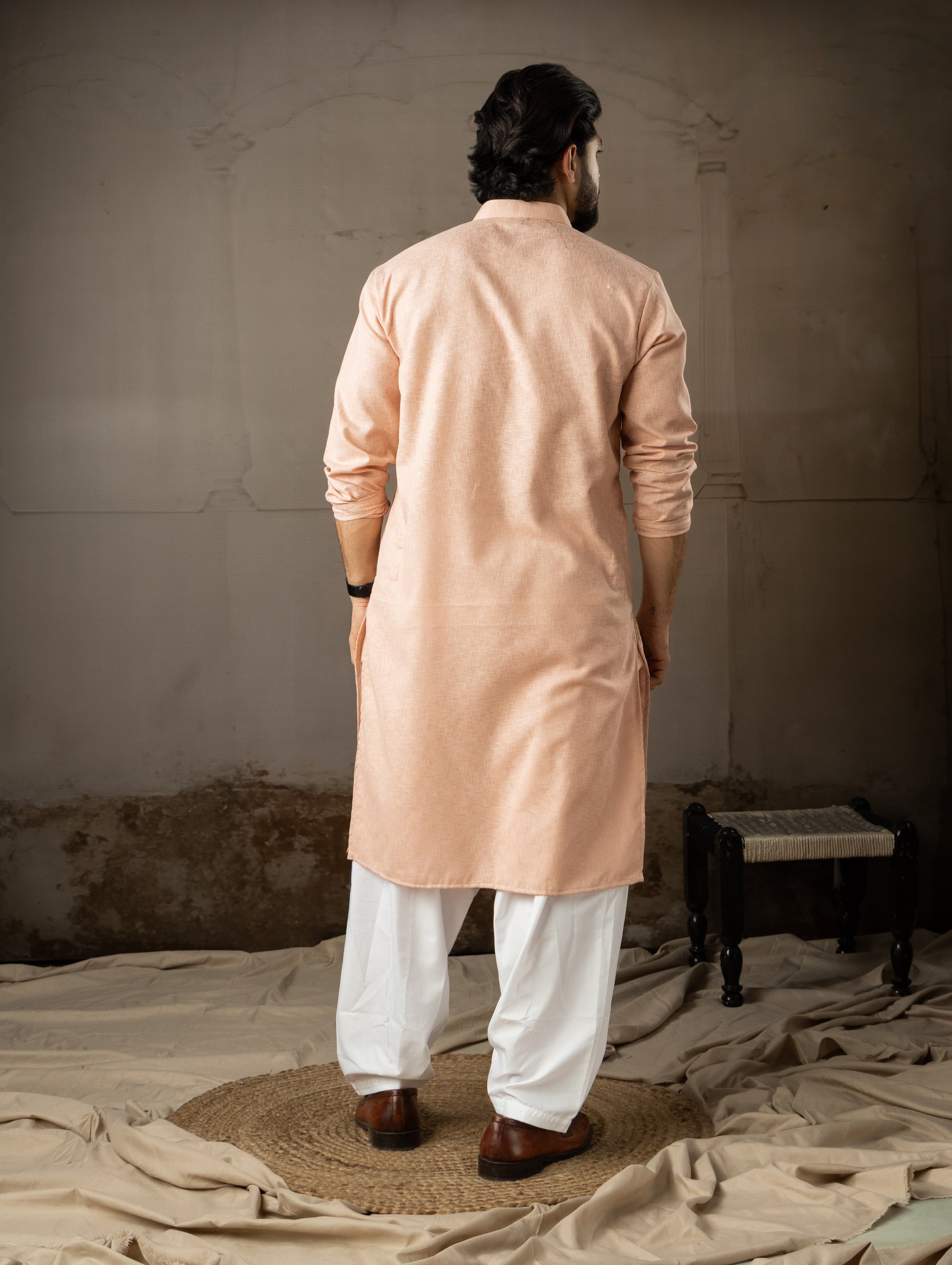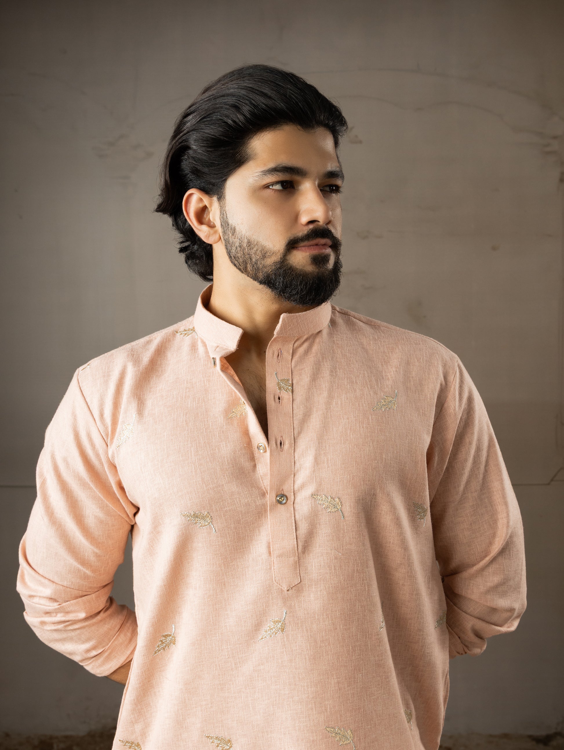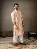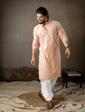 Soft Peach Leaf Embroidery Motif Kurta